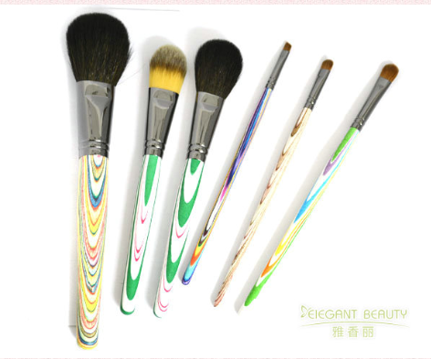 動物毛的刷子的彈性很好,抓粉力強,暈染能力很好,化妝的效果是好的。但它多多少少會有些扎臉,使用起來沒有那么親膚。抓粉力越強暈染力越好的刷子,一定是有點扎臉的。市面上常見的幾種動物毛包括馬毛、灰鼠毛、松鼠毛、和山羊毛。其中山羊毛是最普遍的一種化妝刷材料,細分成粗光峰,中光峰,細光峰,白尖峰,黃尖峰。根據之前的毛峰原理,細光峰羊毛是最高檔的,相對于其他品質,毛發更細更柔,其天然毛發的毛鱗片又使它抓粉力強,是羊毛化妝刷中的極品,價格也較高。馬毛是動物毛中抓粉力最強,但是膚感最差的,因為毛質較硬,比較扎臉。灰鼠毛和松鼠毛則柔軟,屬于高級毛,抓粉力相對馬毛和羊毛較弱,但是日?;瘖y足夠。此外還有狍子毛,狐貍毛等高級毛,都是可以用來做化妝刷的,不過這些產品成本較高,賣的價格也比較昂貴,化妝效果與之前提到的幾種常見無明顯差異。